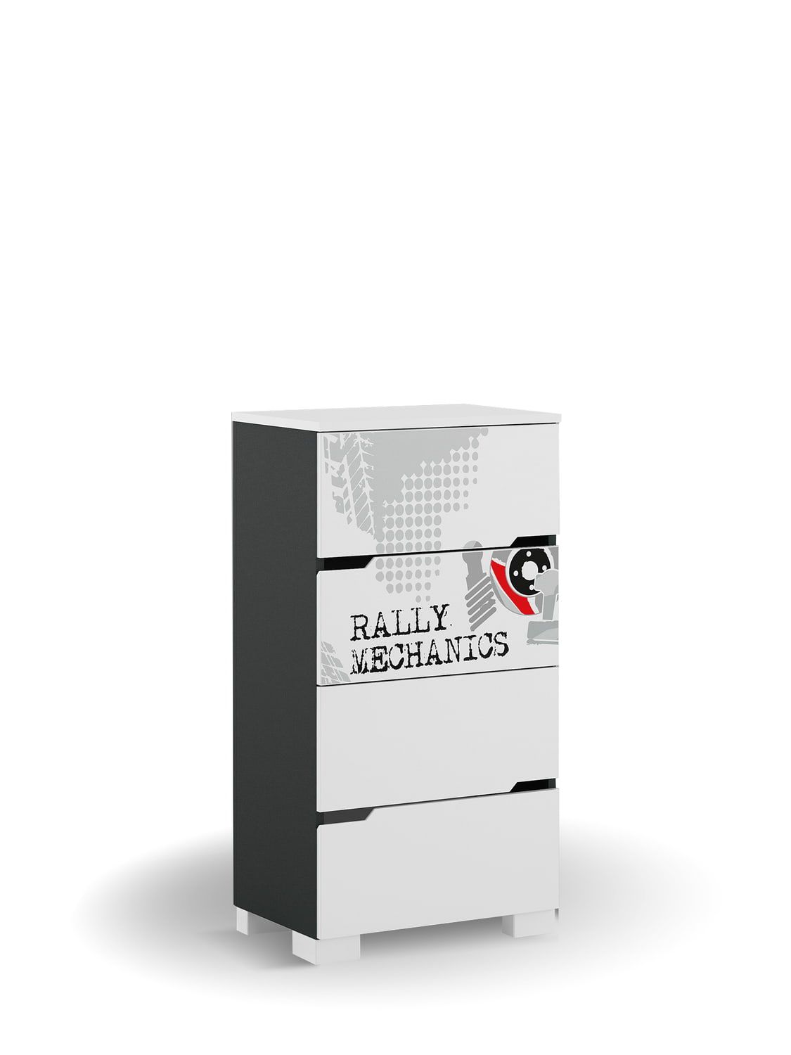 Gravírované a maľované predné dvierka s motívom rely. Teleso z antracitovej, laminovanej dosky.