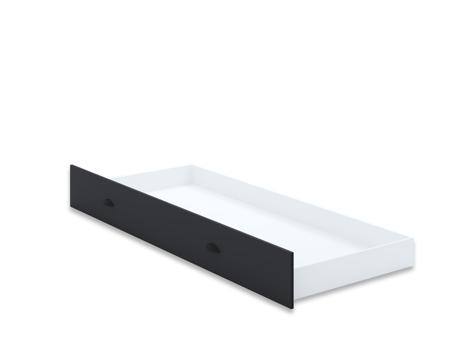 Zásuvka s antracitovým čelom prispôsobená k veľkosti postele. Opcia použiť ako dodatočné miesto na spanie.